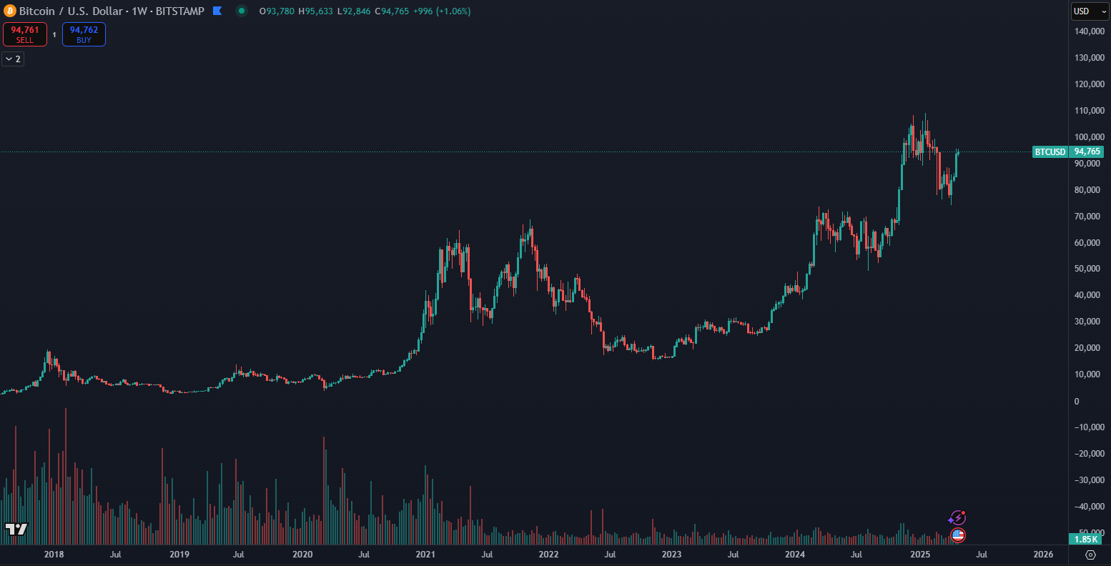 Volatilita Bitcoinu je obrovská. Zdroj: tradingview.com