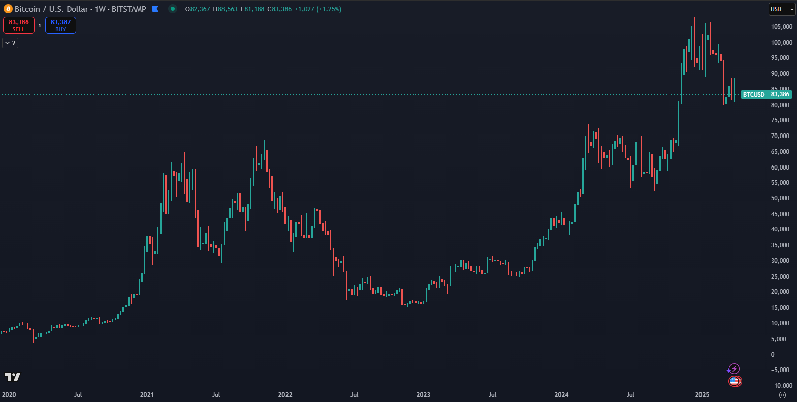 Bitcoin v dlhodobom rastúcom trende. Zdroj: tradingview.com