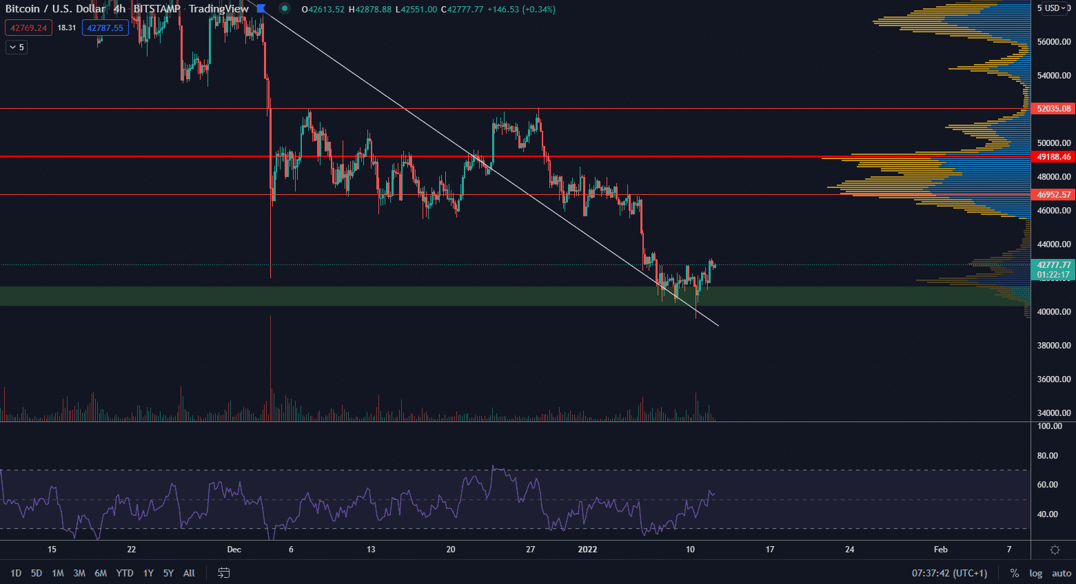 Ak by Bitcoin pokračoval v tomto miernom raste, najbližšia rezistencia sa nachádza na hladine zhruba 47 000 $. Je dosť možné, že na prvý pokus by túto hladinu cena rešpektovala. V tomto scenári by sa potvrdilo lokálne dno, ktoré vzniklo zhruba na 40 000 $. Potom by sme sledovali, či z tohto dna vznikne aj dlhodobé dno.