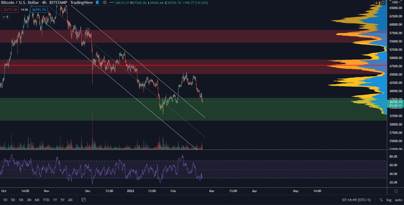 V prípade, že by cena pokračovala v korekcii dlhodobo, najviac medvedí scenár, ktorý sledujem, je MA200 na týždennom grafe. Tento indikátor sa momentálne pohybuje na hladine zhruba 20 000 $ a v čase rastie. Zatiaľ však budeme sledovať support na 30 000 $. Tento scenár nemusí nutne nastať.