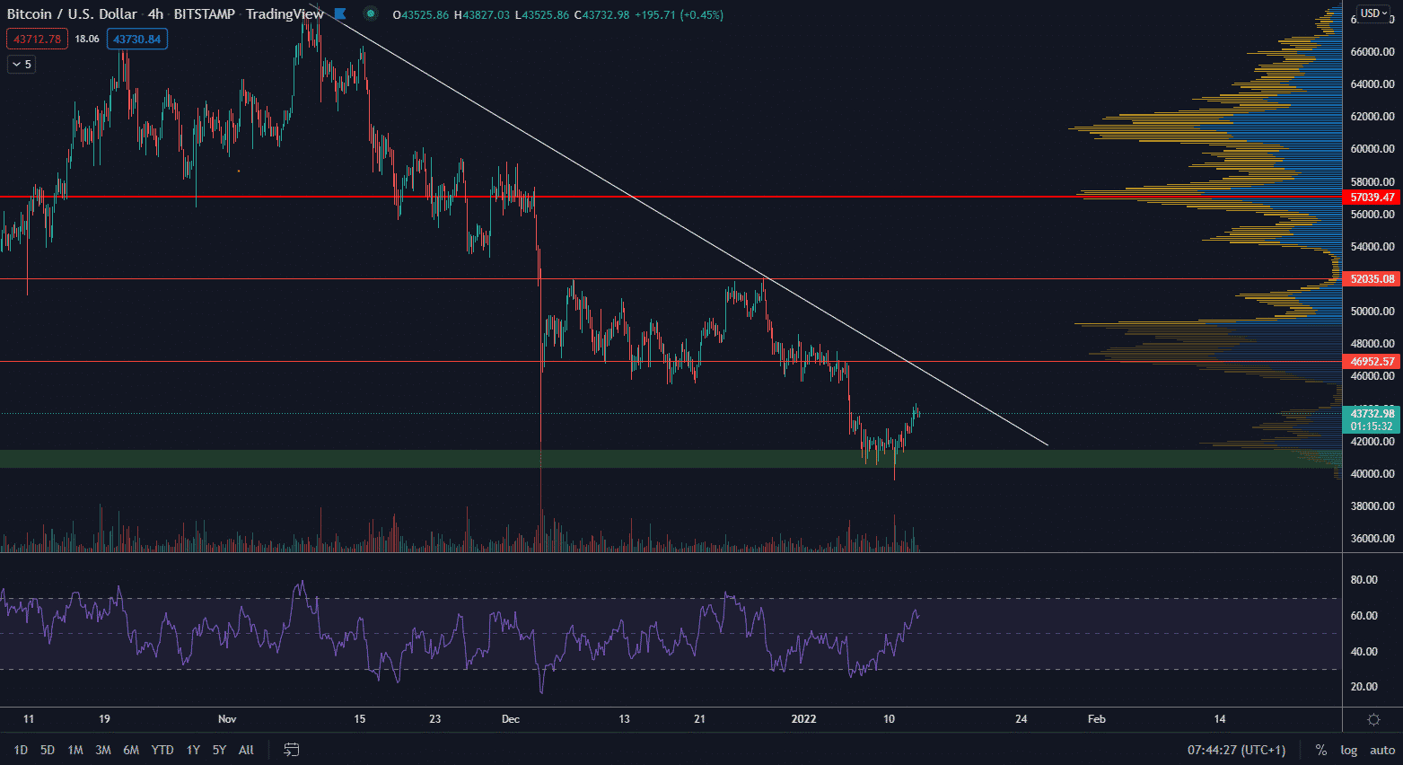 Posledné vytiahnutie na minime bolo pomerne silné, o čom svedčí vysoký spodný knôt. Z krátkodobého hľadiska je tak možné, že cena dosiahne znovu zónu okolo 47 000 $. Ak chceme premýšľať nad reverziou trendu, cena by musela prekonať posledné maximum, ktoré sa nachádza až na hladine 52 000 $.
