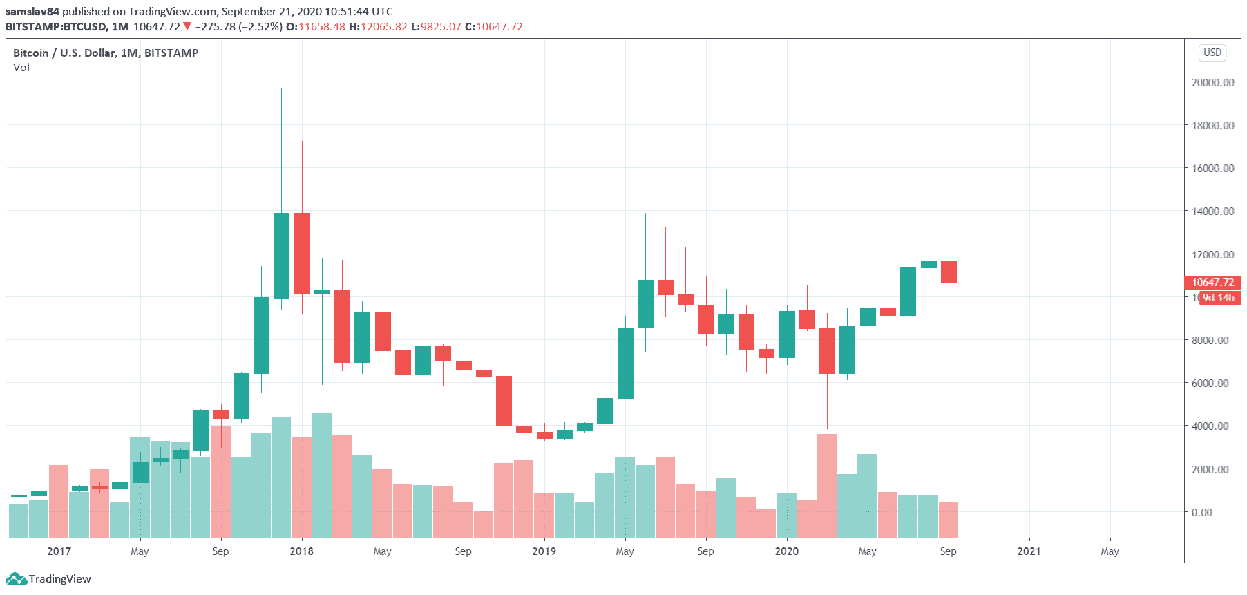 Ako môžete vidieť, časy keď sme sa obávali pádu na 2-3 tisíc dolárov sú už dávno preč. Bitcoin síce v marci tohto roka klesol na 3700 $, dôvodom tohto dumpu však bola panika okolo koronavirusu, ktorá tvrdo zasiahla aj akciové trhy, zlato, či ropu. Nasledoval rýchly rast späť nad 10 000 $, kde sa Bitcoin udržal aj počas prepadov zo začiatku septembra.