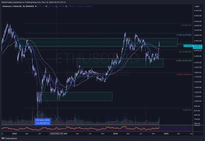Podľa technickej analýzy sa Ethereum približuje k hlavnej podpornej oblasti v rozmedzí od 3 072 USDT do 2 987 USDT. Podľa analytikov, ak sa tento rozsah udrží, Ethereum bude schopné získať späť býčí momentum. Existuje však vysoká úroveň odmietnutia medzi 3 100 USDT a 3 500 USDT, a to môže v blízkej budúcnosti obmedzovať jeho rastový potenciál.