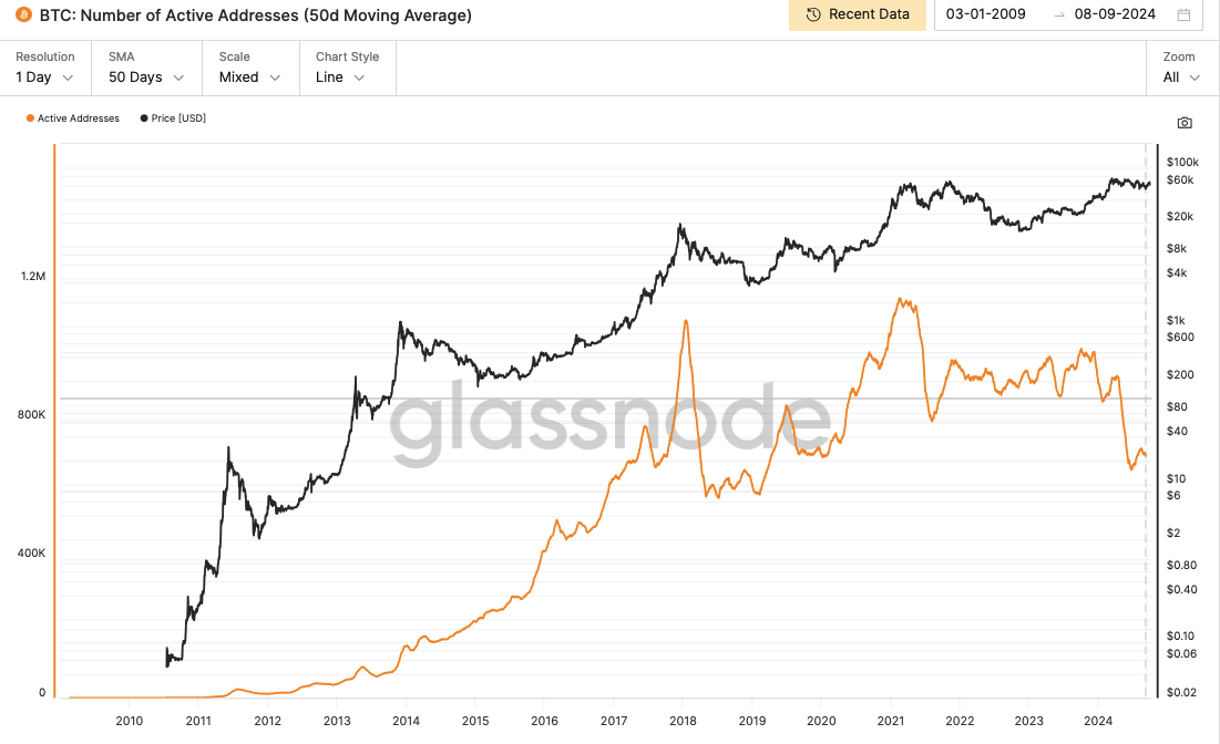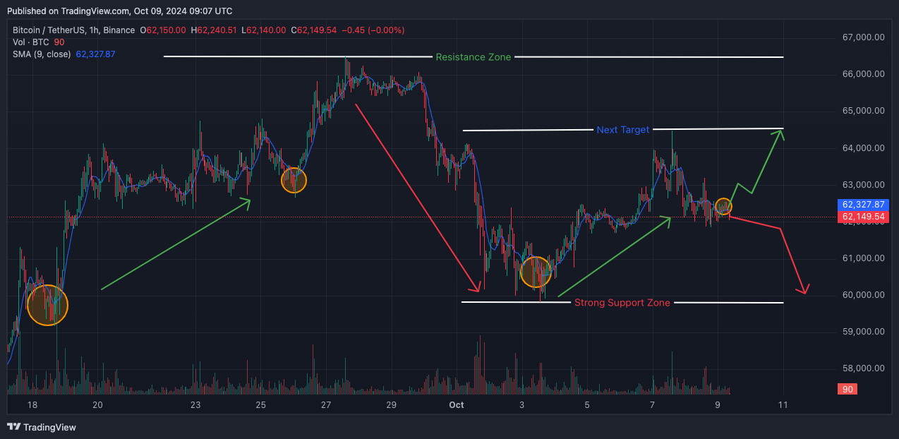 Cena Bitcoinu sa momentálne nachádza medzi dvoma kľúčovými technickými úrovňami: 50-denným a 200-denným jednoduchým kĺzavým priemerom (SMA). K dnešnému dňu je cena Bitcoinu približne 62 000 dolárov. 200-denný SMA poskytuje odpor na úrovni 63 550 dolárov, zatiaľ čo 50-denný SMA ho podporuje na úrovni 60 819 dolárov. To vytvára úzke rozpätie, ponechávajúc trh v neistote.