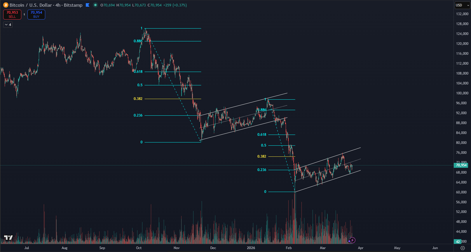 Kľúčovým faktorom je Fibonacciho retracement. Obe spomínané vlajky stúpli presne do výšky 38,2 % predošlej klesajúcej vlny. Táto úroveň funguje pri obchodovaní ako prvý cenový cieľ a zároveň silná bariéra. Ak trh nedokáže túto hranicu prekonať, hrozí mu ďalší prepad. Pri zopakovaní histórie môže Bitcoin čakať pád o ďalších 10 000 dolárov. Takýto pohyb by cenu stlačil hlboko ku hranici 60 000 dolárov.