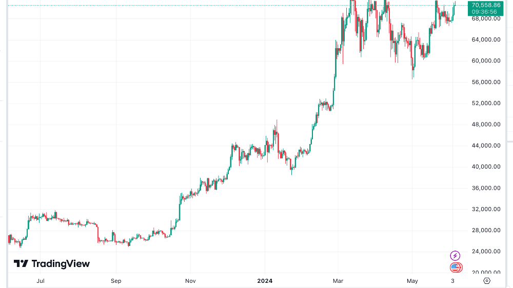Bitcoin nedávno prekonal niekoľko kľúčových odporových úrovní a jeho cena sa stabilne udržuje nad 70 000 dolárov.