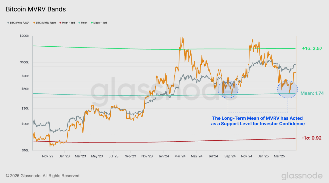 Práve dlhodobý priemer MVRV slúži ako podpora dôvery investorov. Udržanie tejto úrovne alebo jej prerazenie nahor je z pohľadu trhového sentimentu konštruktívne. Znamená to, že investori veria v budúci rast a sú ochotní znovu vstúpiť na trh, čím sa vytvára základ pre nový vzostupný cyklus.