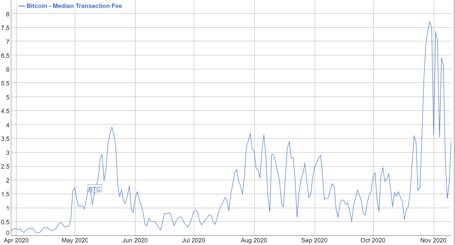 Aj poplatky už klesajú. Medián včera klesol pod 1,5 $, dnes je o niečo vyššie, no v najbližšej dobe pravdepodobne padne pod dolár. Ak sa neponáhľate, transakciu vám potvrdia aj za 1 sat/B, ale môže to trvať aj niekoľko hodín.