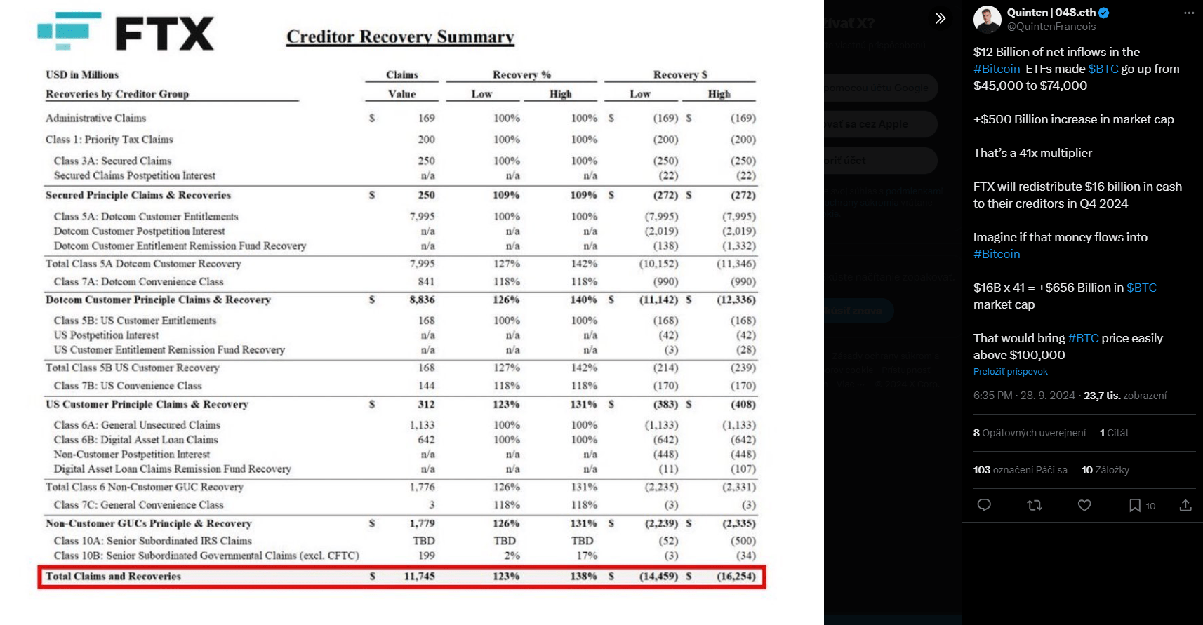 - Očakáva sa redistribúcia 16 miliárd dolárov od FTX v poslednom kvartáli 2024.