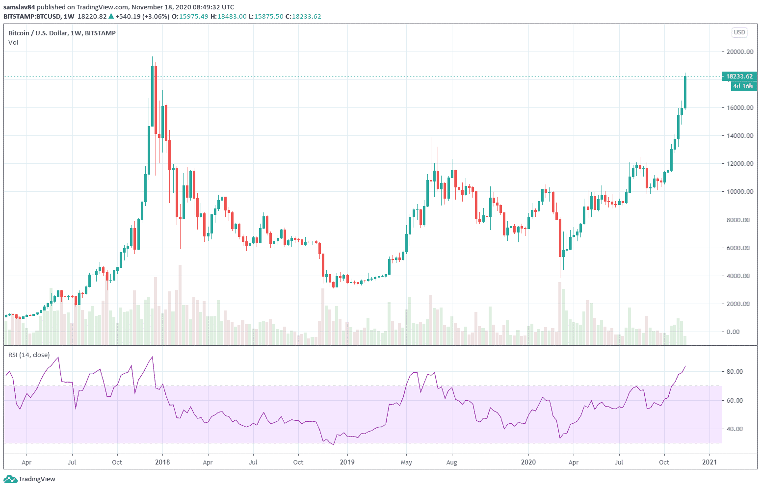 Dúfame, že teraz sledujete Bitcoin, pretože už je iba 1500 $ pred dosiahnutím historického maxima. Hodnota 18 500 $ je naozaj extrémne vysoká a zdá sa, že Bitcoin sa zastaví až pri samotnom maxime. Stačí mu zvýšiť svoju hodnotu o 7,5%! Ale ako je možné, že zatiaľ čo BTC robí takéto šialené zisky, ostatné kryptomeny ostávajú pozadu?