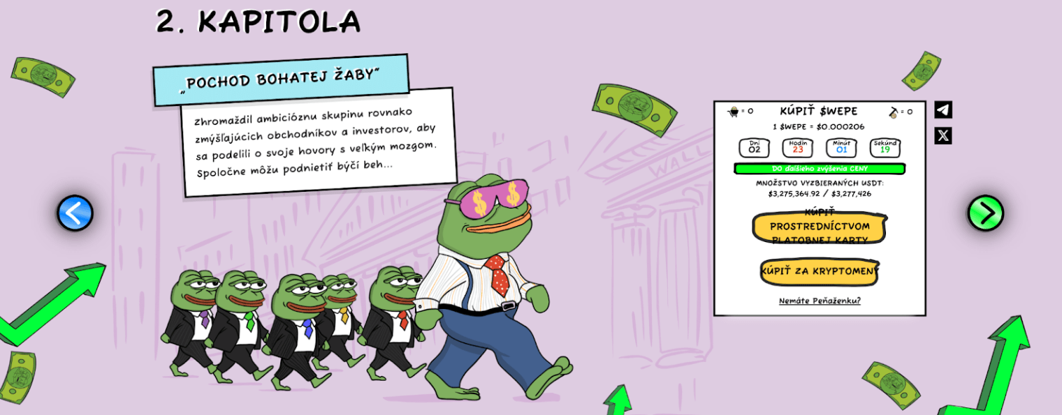 Meme coin Wall Street Pepe (WEPE) sa zameriava na sprístupnenie pokročilých obchodných nástrojov pre bežných obchodníkov. Projekt si kladie za cieľ vybudovať Wepe Army, komunitu, ktorá dokáže konkurovať veľkým hráčom na trhu.