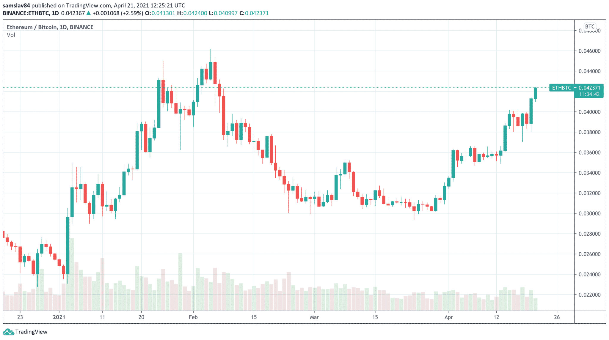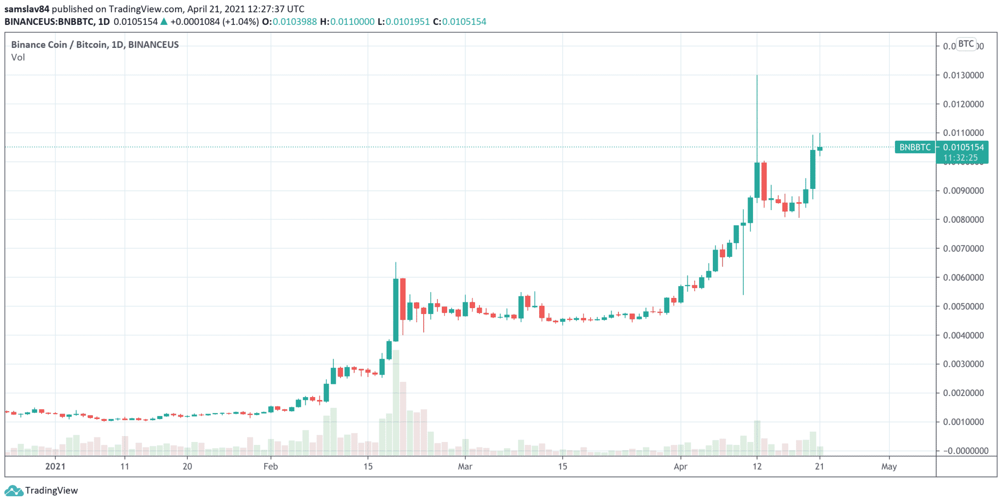 O tom, že do trhu naďalej prúdi kapitál, svedčí rast hodnoty väčšiny altcoinov. Ethereum ETH ostáva veľmi silné a obchoduje sa nad úrovňou marcového maxima (čo v prípade Bitcoinu neplatí) a Binance Coin BNB po korekcii opäť atakuje 600 dolárov. Aj XRP sa dnes mierne spamätáva a Dogecoin pre zmenu klesol o 25% po včerajšom útoku na historické maximum.