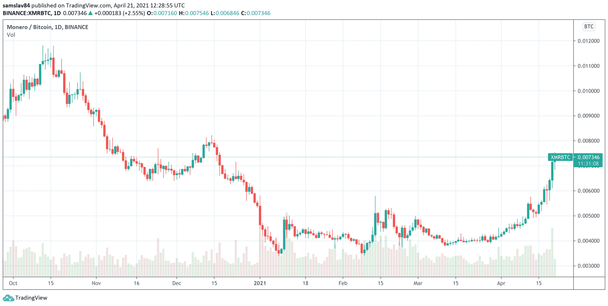 Zaujímavo vyzerá aj Monero XMR, ktoré po troch rokoch prvýkrát testuje hladinu 400 USD a spamätáva sa aj v páre s BTC. I keď, v porovnaní s Bitcoinom to rozhodne nie je dobrá investícia.