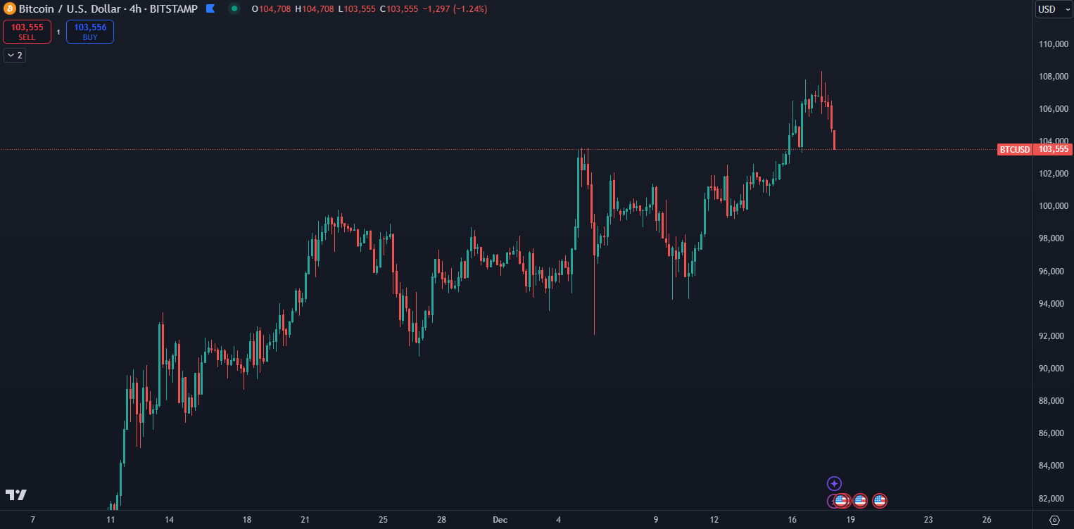Bitcoin prekonal 108 000 dolárov. Zdroj: TradingView