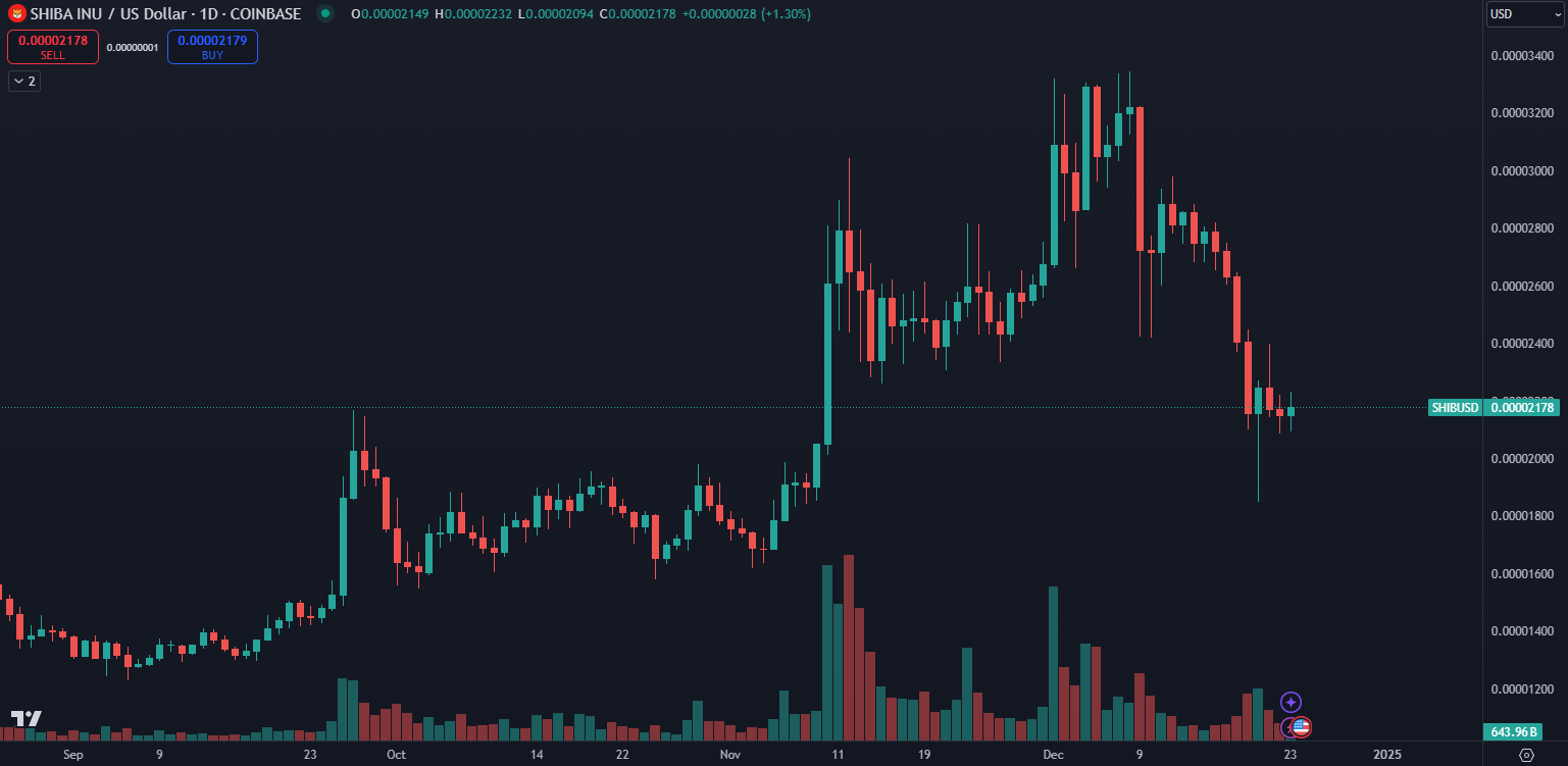 Cena kryptomeny SHIB. Zdroj: TradingView