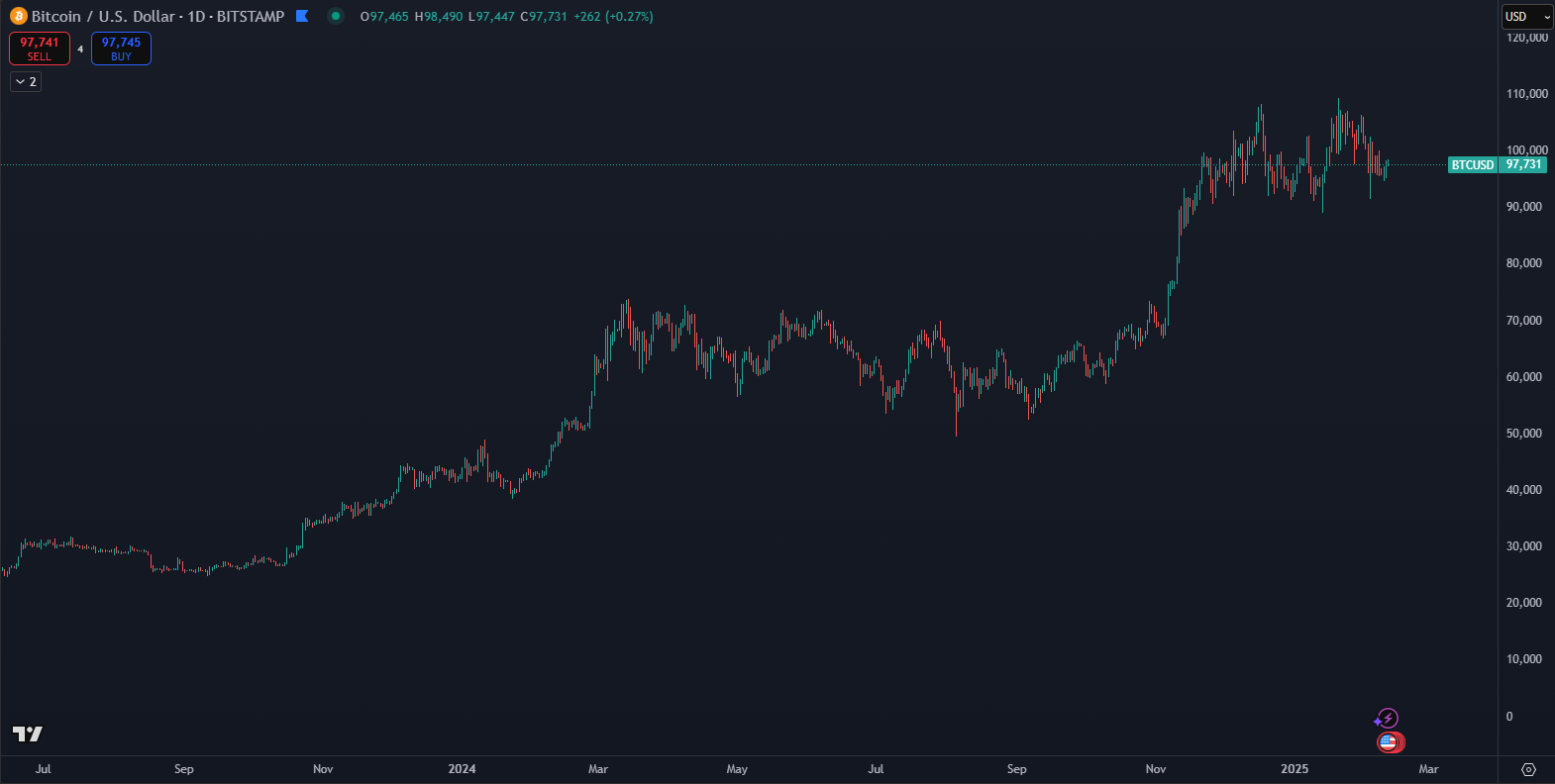 Riaditeľ investícií spoločnosti Bitwise, Matt Hougan, pridal váhu týmto predpovediam tvrdením, že plánovaný nákup Bitcoinu americkou vládou by mohol vytlačiť cenu až na 500 000 dolárov. V čase publikácie sa Bitcoin obchoduje za 97 731 dolárov, čo predstavuje mierny pokles o 0,92 % za posledný týždeň.