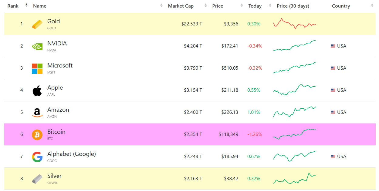 Bitcoin je už 6. najhodnotnejšie aktívum sveta. Zdroj: companiesmarketcap.com