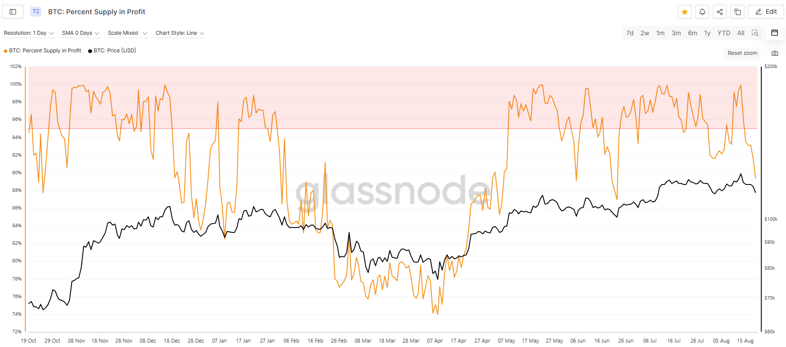 Jedným z kľúčových dôvodov je vyberanie ziskov zo strany investorov, ktorí realizujú zisky po prudkom raste. Podľa platformy Glassnode pád spôsobil, že každý desiaty držiteľ je už v strate. Metrika ponuky v zisku padla z hodnoty 100 % na súčasných 89 %. Tento tlak prirodzene vedie k predaju a krátkodobým korekciám, ktoré môžu zmeniť trhový sentiment.
