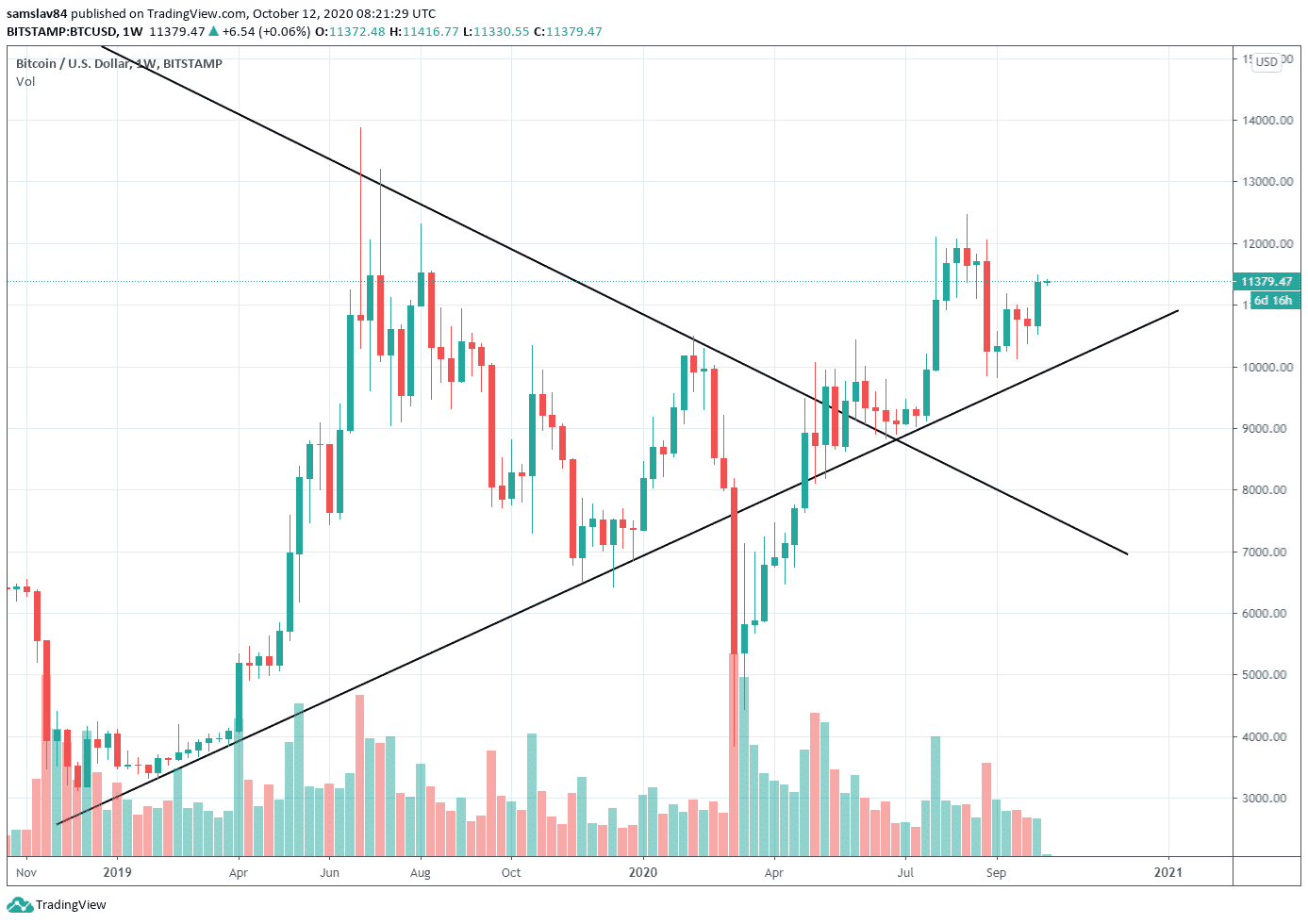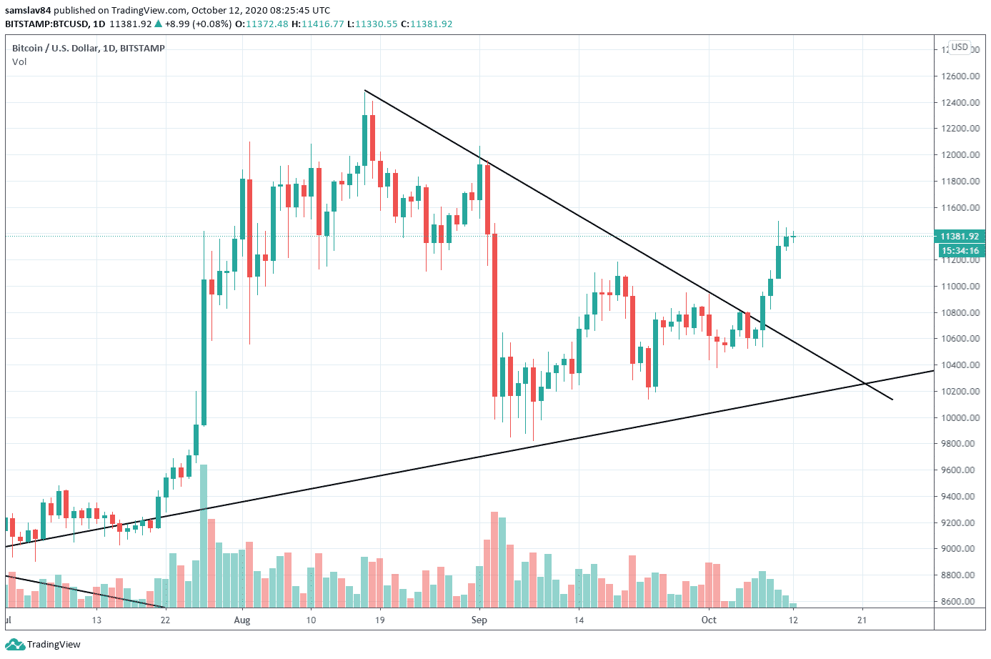 My zatiaľ nechceme tak predbiehať, no trh je skutočne nastavený na pokračovanie UPtrendu. Bitcoin po náročnom septembri konečne prerazil jedenásť tisíc dolárov a neexistuje trader, ktorý by si nevšimol tento pohyb. Obchodníci začínajú otvárať longy, hodleri prikupujú a cenu to potlačí minimálne na tohtoročné maximum (12 500 $).