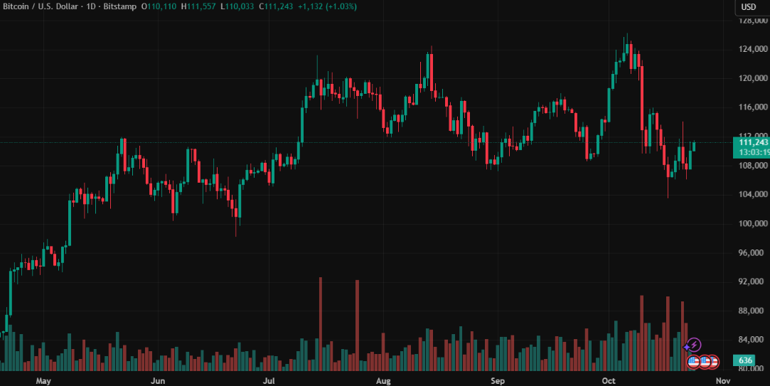 Najväčšia kryptomena prežíva turbulentný október, počas ktorého nové historické maximá nečakane vystriedal prudký pokles Bitcoinu až k 104 000 dolárom. Situáciu momentálne zhoršujú aj obavy z bankovej krízy v USA a investori sa strachujú, že Bitcoin padne až pod 100 000 $. Prečítajte si, ako teraz vyzerá predikcia Bitcoin podľa popredných analytikov.