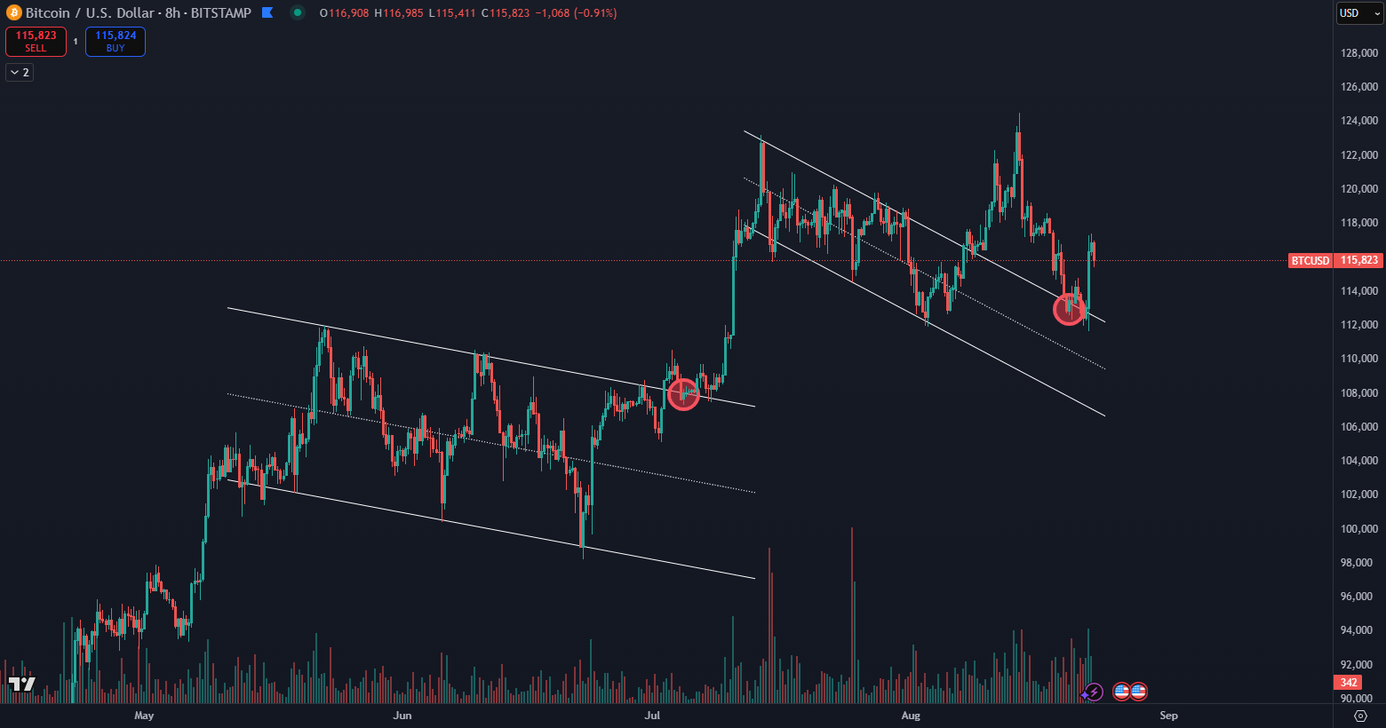 Silný odraz od supportu zároveň naznačuje, že dopyt po Bitcoine zostáva vysoký, pričom investori aj naďalej využívajú poklesy na nové nákupy. Trh sa nachádza v kľúčovej fáze, kedy sa rozhoduje o ďalšom trende. Ak sa potvrdí rovnaký cenový vzorec ako začiatkom júla, môžeme v nasledujúcich týždňoch očakávať útok na doterajšie maximum.