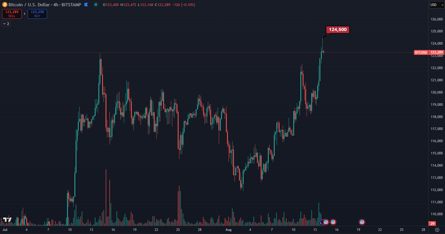 - Bitcoin dosiahol rekordných 124 500 dolárov.