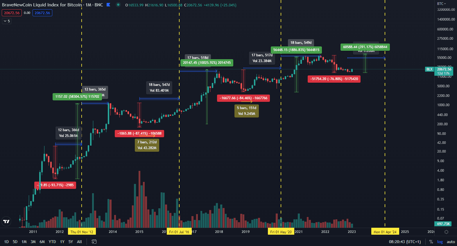Bitcoin a jeho bullruny. Zdroj: TradingView