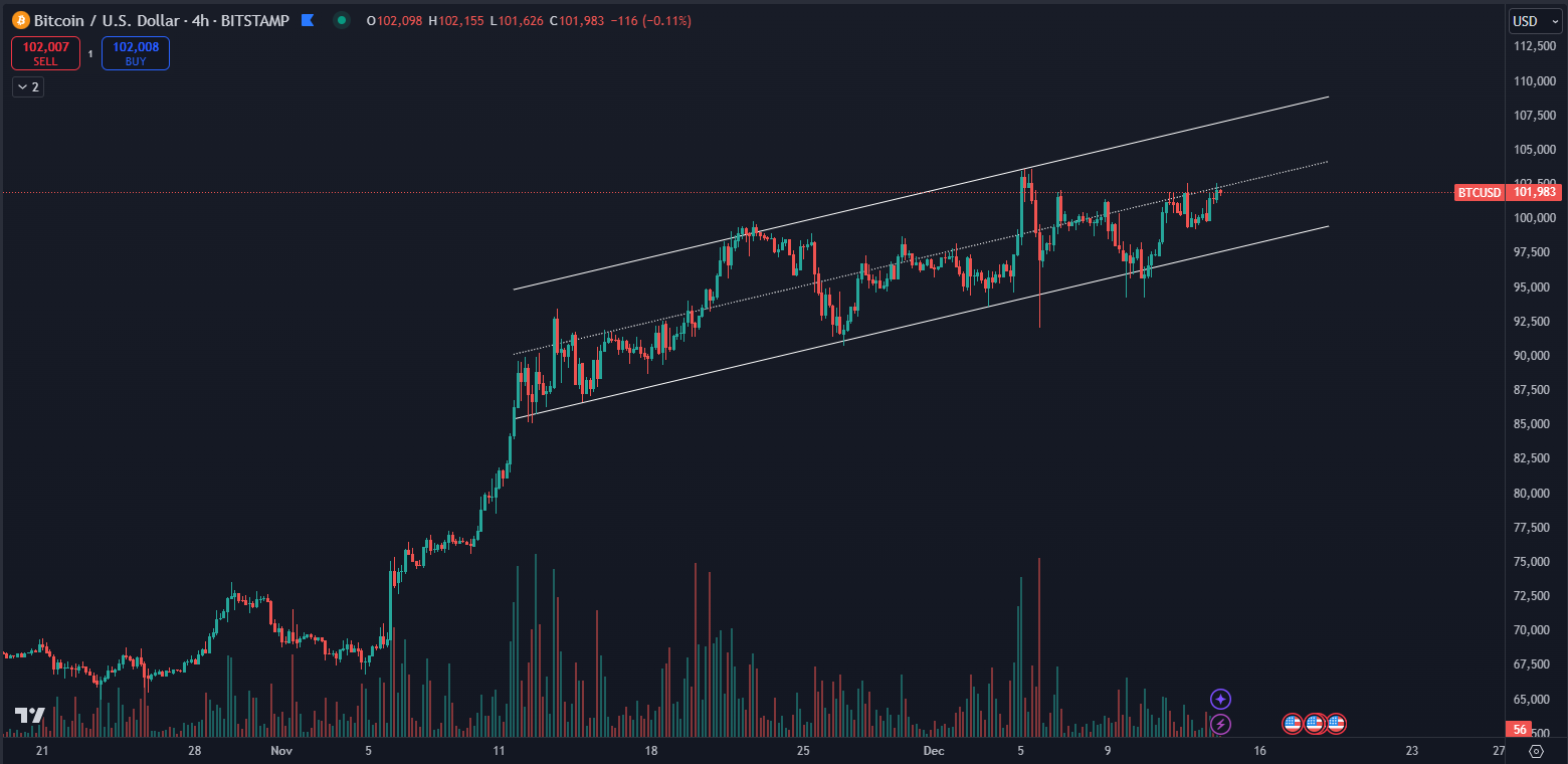 Prípadný výstrel ceny nahor by ale všetko zmenil. Bitcoin totiž nevytvoril ani jedno klesajúce minimum, takže z technického hľadiska je trend stále naklonený nakupujúcim. Prerazenie rezistencie z rastúceho kanála, ktorý vidíme na grafe nižšie, by znamenalo, že Bitcoin môže pokojne prekonať aj 120 000 dolárov.