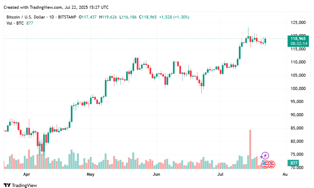 Bitcoin sa v júni opäť dostal na svoje historické maximá a väčšinou sa obchodoval nad úrovňou 110 000 dolárov, kde sa konsolidoval. On‑chain dáta ukazujú výraznú akumuláciu a nárast dlhodobých držiteľov, ktorí vyberajú svoje mince z búrz.