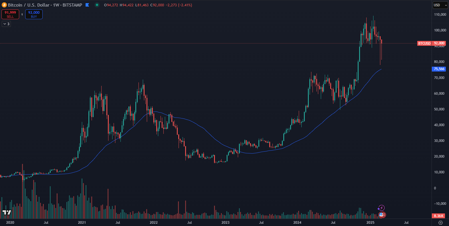 Vo svojom príspevku na sociálnej sieti X zo 4. marca analytik poukázal na to, že podobné prelomenie v roku 2021 znamenalo koniec vtedajšieho rastúceho trhu. Bitcoin vtedy dosiahol vrchol na úrovni 69 000 dolárov pred uzavretím pod 50-týždňovým MA na úrovni 42 500 dolárov, čo spustilo dlhodobý zostupný trh. V súčasnosti BTC opäť testuje túto kľúčovú úroveň, ktorá je teraz približne na 75 000 dolároch.
