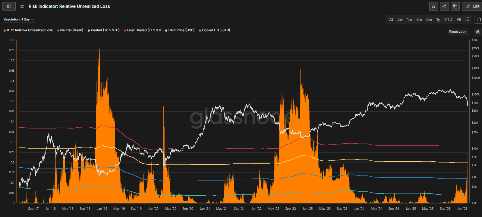 Relatívne nerealizované straty. Zdroj: glassnode.com