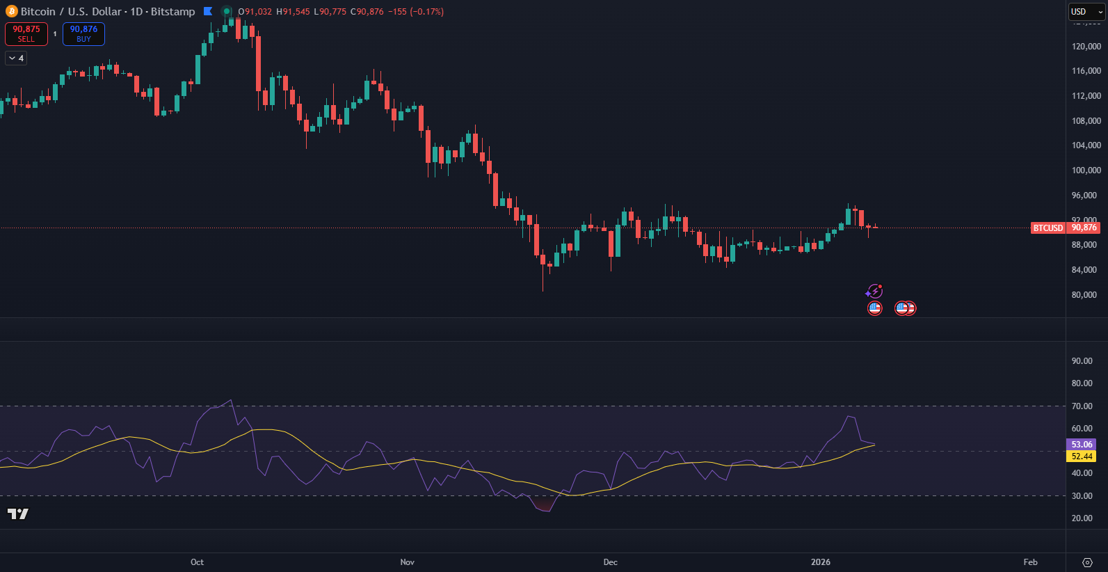 Bitcoin a indikátor RSI. Zdroj: tradingview.com
