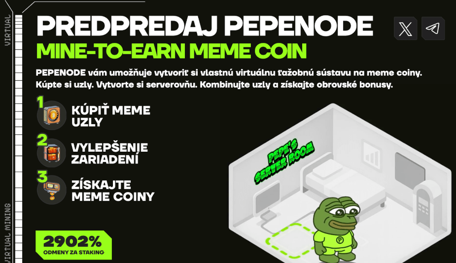 Kým investori a analytici pozorne sledujú súboj Bitcoinu a Etherea, v pozadí naberá na sile PEPENODE, natívna kryptomena novej mine-to-earn platformy. Využíva žabiu tematiku Pepe, tretieho najväčšieho meme coinu, a prináša technologické inovácie. Tradičná ťažba vyžaduje veľké množstvo energie, kúpu špecializovaného hardvéru aj inštaláciu programov. PepeNode toto všetko obchádza a simuluje ťažbu meme coinov vo virtuálnom priestore.