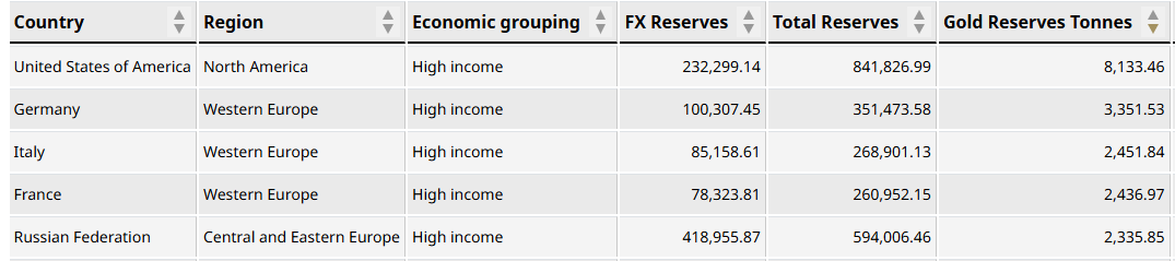 Krajiny s najväčšími rezervami zlata. Zdroj: World Gold Council