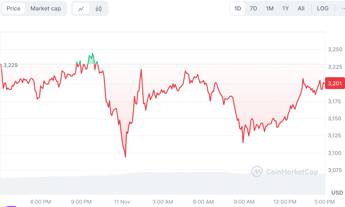 Ethereum tiež zaznamenalo veľmi dobré zotavenie a v pondelok sa obchoduje za 3 441 USDT. Minulý týždeň dosiahlo 3 000 USDT a stále si drží vysokú úroveň vďaka väčším inštitucionálnym prílevom a lepšej regulácii. Živé údaje z CoinGecko ukazujú, že Ethereum zaznamenalo týždenný nárast hodnoty takmer o 30 % pri všeobecne rastúcej dôvere malých aj veľkých investorov.