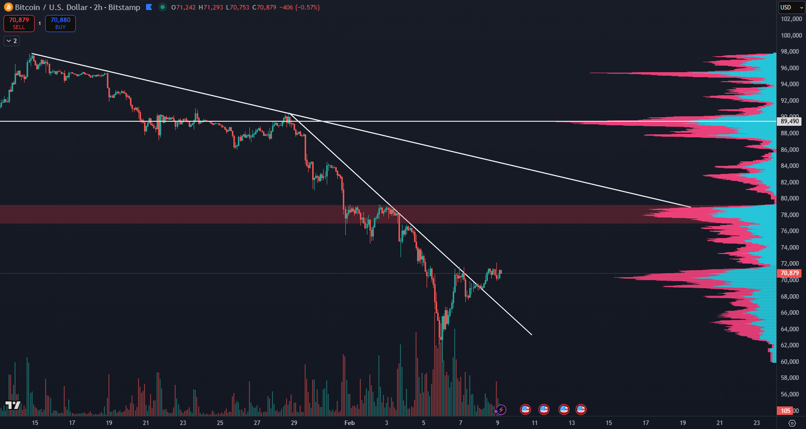 Bitcoin však čelí viacerým prekážkam, ktoré zatiaľ bránia ukončeniu korekčnej fázy. Najsilnejšiu rezistenciu dnes tvorí pásmo 86 000 až 93 000 dolárov. V tejto oblasti sa koncentrujú vysoké transakčné objemy, ktoré sa vytvorili od novembra 2025 do januára 2026. Práve tieto objemy fungujú ako silná bariéra, keďže mnohí investori v tejto zóne realizovali zisky alebo uzatvárali staré pozície.