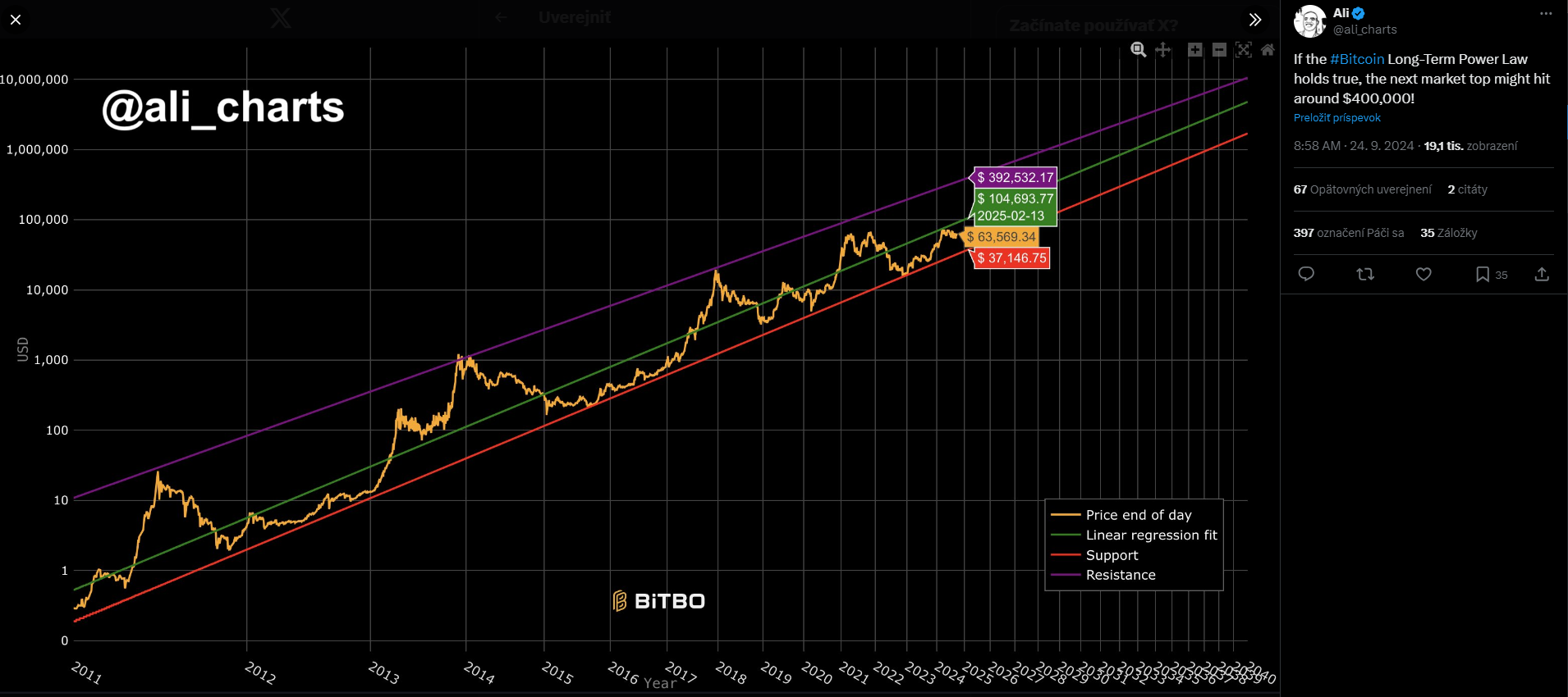 - Analýza kryptomenového analytika predpovedá možný nárast BTC na 400 000 dolárov.