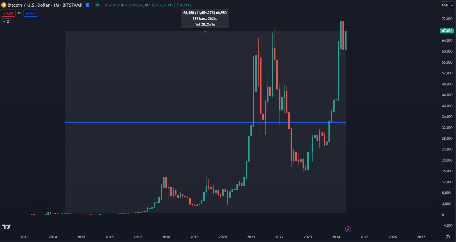 Mnohí, ktorí dodnes nenakúpili Bitcoin si myslia, že im vlak už dávno ušiel. Opak je pravdou. Bitcoin síce nebude z percentuálneho hľadiska za rovnaký čas robiť také percentá ako v minulosti, no dlhodobo jeho hodnota stúpa. Takže aj o pár rokov si zrejme poviete, že ste mohli nakupovať v roku 2024.