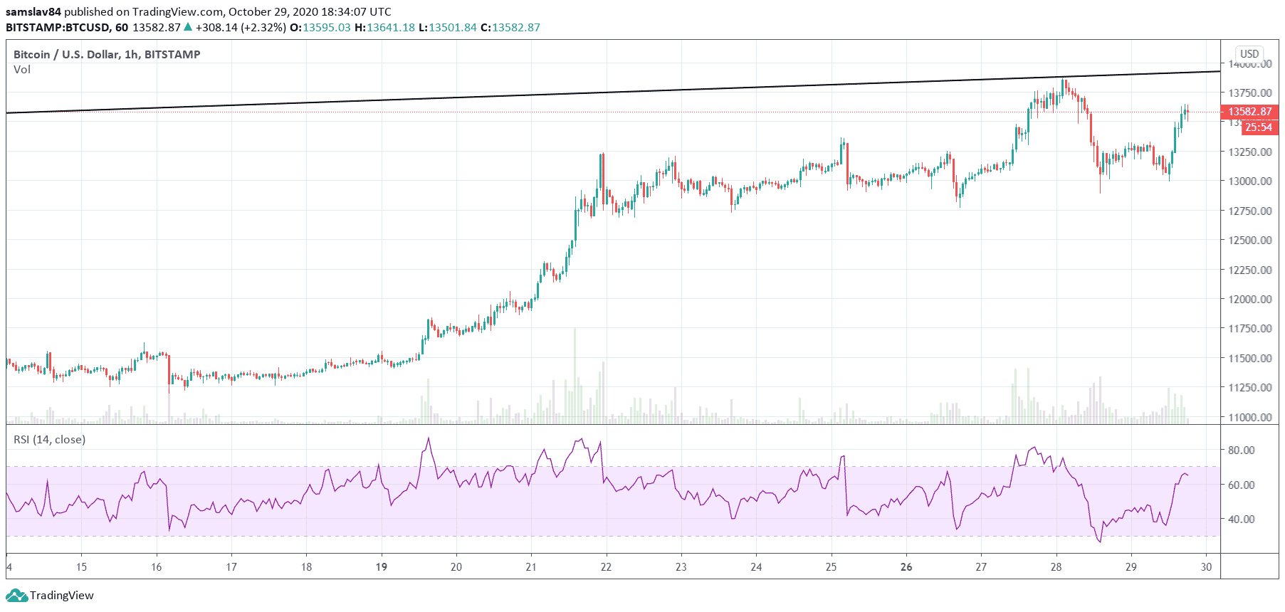 - Bitcoin za posledných pár dní – 1h graf