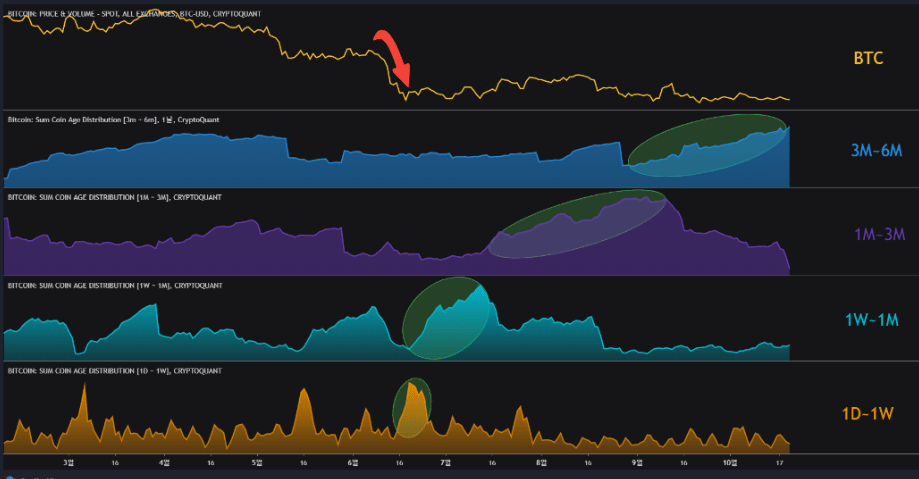 Relevantným indikátorom je tzv. „Sum Coin Age Distribution”. Ide o ukazovateľ, ktorý hovorí o sumách, ktoré jednotlivé skupiny bitcoinových investorov držia vo svojich peňaženkách. Indikátor pritom poukazuje aj na vek mincí, čo je v podstate miera celkového počtu dní, počas ktorých sa mince nehybne nachádzajú v peňaženkách investorov.