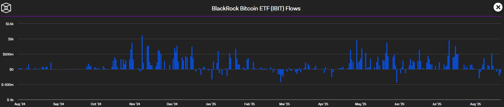 Toky kapitálu do IBIT jednoznačne dominujú na strane nakupujúcich, ukazujú údaje The Block. Posledné najvýraznejšie obdobie nákupov nastalo v polovici júla, keď niekoľko dní po sebe príliv presahoval 500 miliónov dolárov, čo podčiarklo silný záujem investorov a rastúcu dôveru v tento ETF produkt.