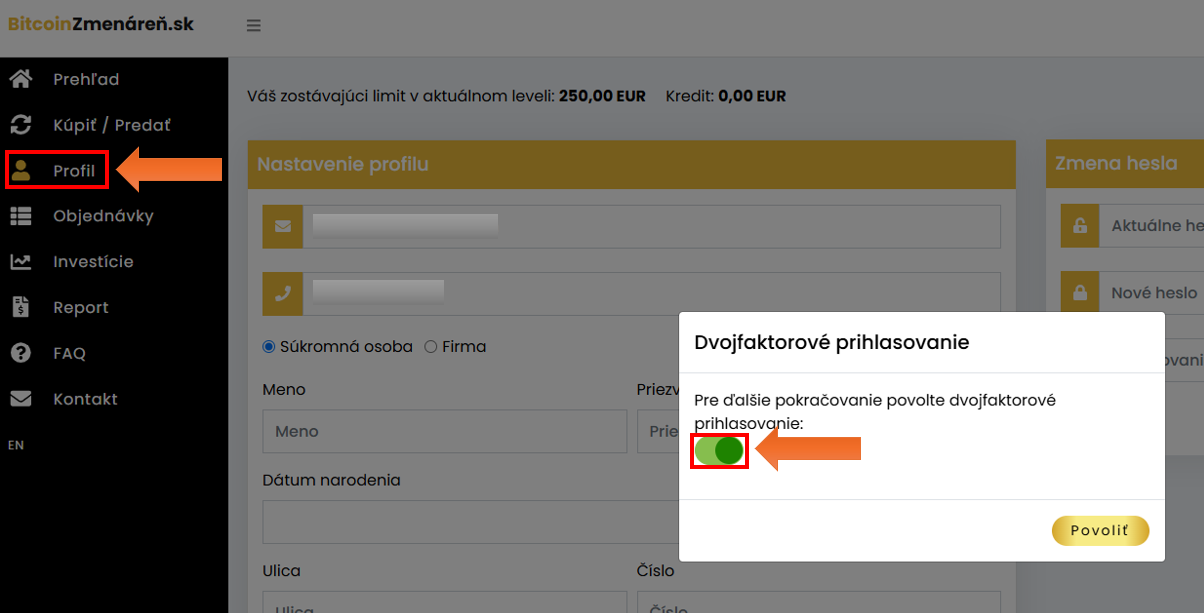 - Zapnite dvojfaktorové prihlasovanie