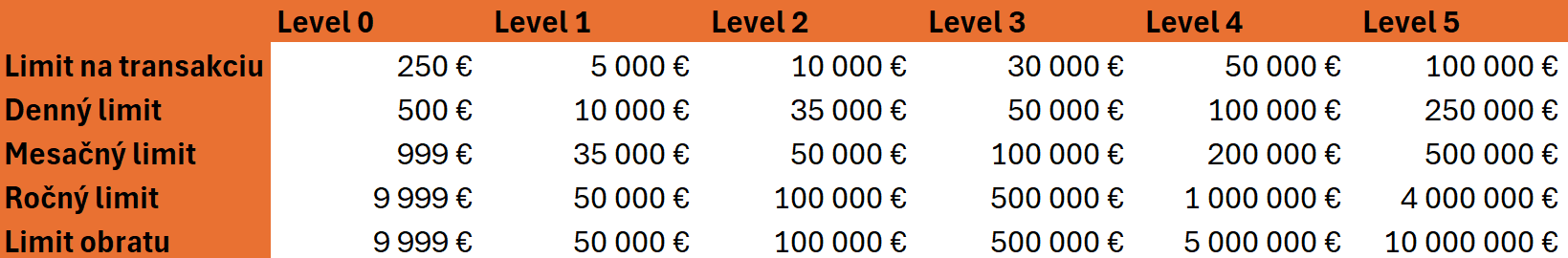 - Level 3: Podporný doklad s fotografiou (napr. vodičský preukaz) + vyplnenie dotazníku KYF – Proof of Funds