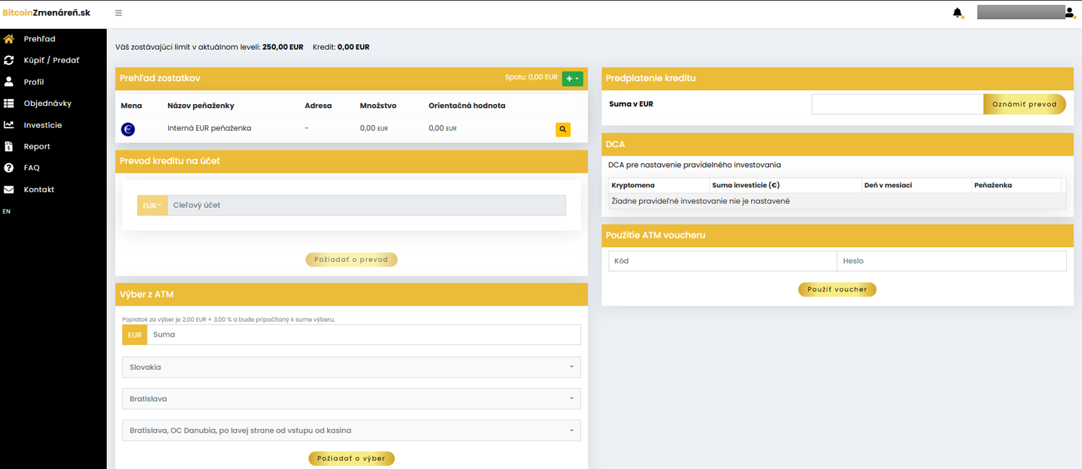 - Výber z ATM: Sekcia poskytuje informácie o výbere kryptomien prostredníctvom bitcoinového ATM. Užívatelia môžu vykonať výbery v hotovosti z kryptomien cez tento spôsob s príslušnými poplatkami a limitmi.