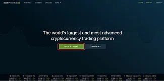 Krok 1: Otvorte si stránku Bitfinex.com a kliknite na tlačidlo OPEN ACCOUNT.