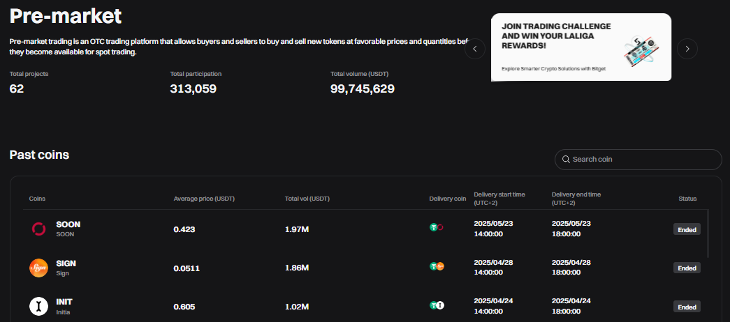 - Pre-Market: Umožňuje obchodovať tokeny ešte pred ich oficiálnym zalistovaním. Používatelia tak získavajú skorý prístup k potenciálne výnosným aktívam. Cena sa určuje dynamicky na základe ponuky a dopytu. Pre-Market poskytuje transparentnosť, férové podmienky a likviditu pre nové tokeny. Táto fáza je ideálna pre investorov, ktorí chcú získať náskok pred širokou verejnosťou.