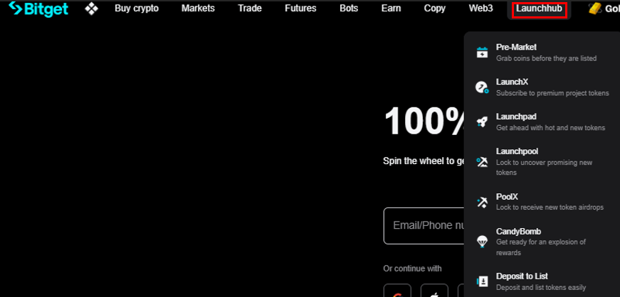 Bitget Launchhub je komplexná platforma pre uvádzanie nových kryptoprojektov cez rôzne služby ako Launchpad, Launchpool či Pre-Market.