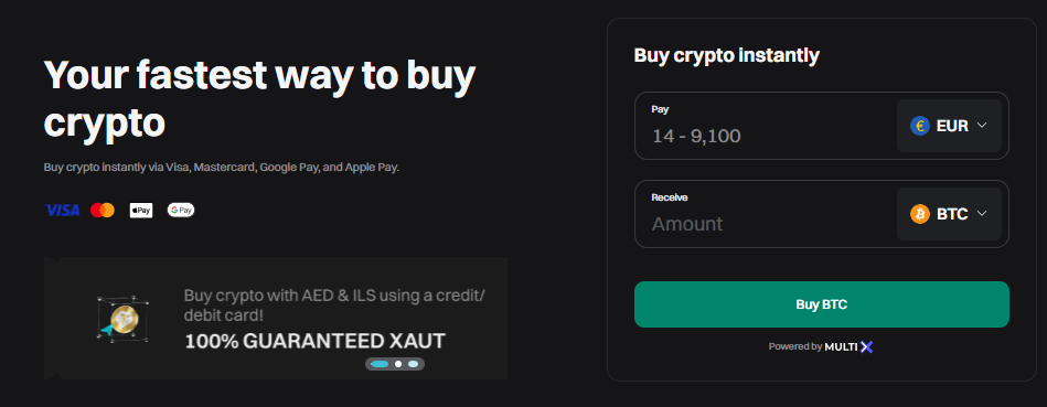 - Kreditná/debetná karta: Používatelia môžu nakupovať kryptomeny priamo cez Visa alebo Mastercard. Táto možnosť je rýchla a pohodlná, avšak často spojená s vyššími poplatkami, ktoré si účtujú poskytovatelia platieb (napr. Simplex, Banxa).