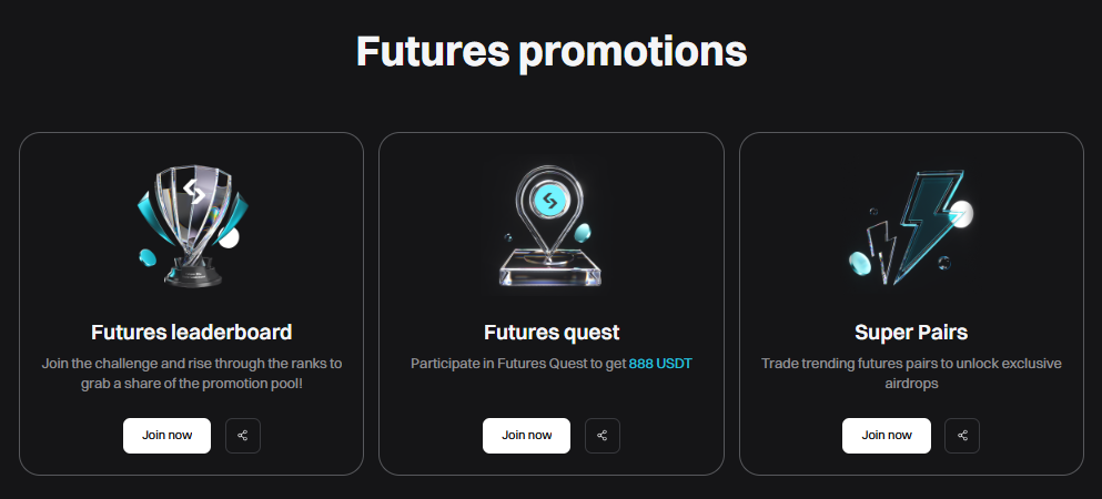 - Futures Promotions: Bitget pravidelne ponúka rôzne promo akcie pre futures obchodovanie, vrátane bonusov za vklad, cashbackov a súťaží. Cieľom je zvýšiť aktivitu traderov a poskytnúť motiváciu na rozšírenie obchodných stratégií a objemov.