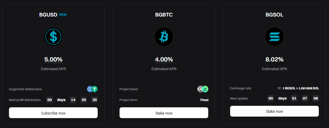 - Launchpool: Umožňuje používateľom získať nové kryptomeny jednoduchým stakingom svojich tokenov, ako napríklad BGB alebo stablecoinov. Je to bezrizikový spôsob, ako profitovať z nových projektov ešte pred ich zalistovaním, pričom zisky sa rozdeľujú denne počas trvania kampane.